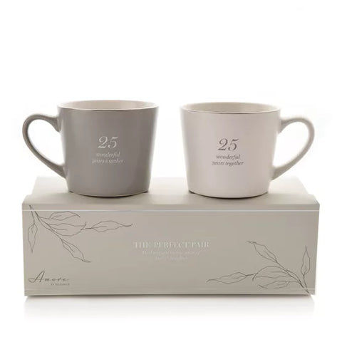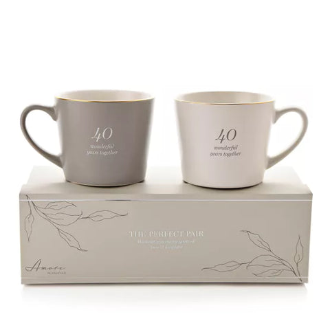 Amore Set of 2 Grey & White Mugs - 40th Anniversary
