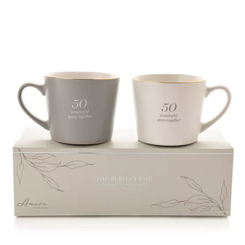 Amore Set of 2 Grey & White Mugs - 50th Anniversary