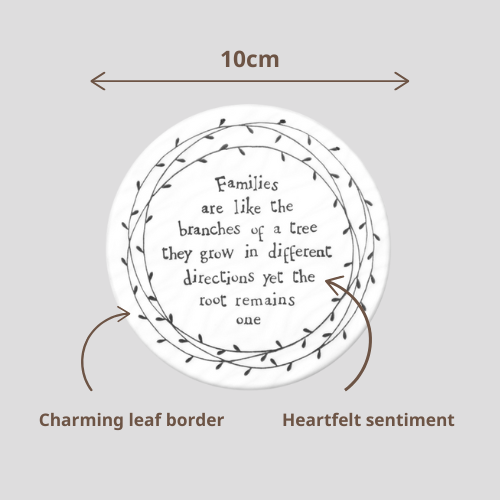 - Heartfelt Sentiment: Features an inspirational quote about family unity, making it a thoughtful keepsake. - 'Families are like the branches of a tree, they grow in different directions yet the root remains one'