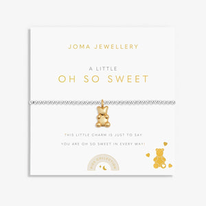Joma Jewellery Girls 'a little' Oh So Sweet beaded stretch bracelet in silver plating with a beautiful gold plated bear charm, presented on a stamped sentiment card which reads: