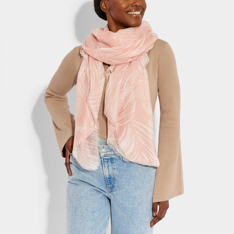Katie Loxton Foil Printed Scarf - Flora Outline - Blush Pink & Off White