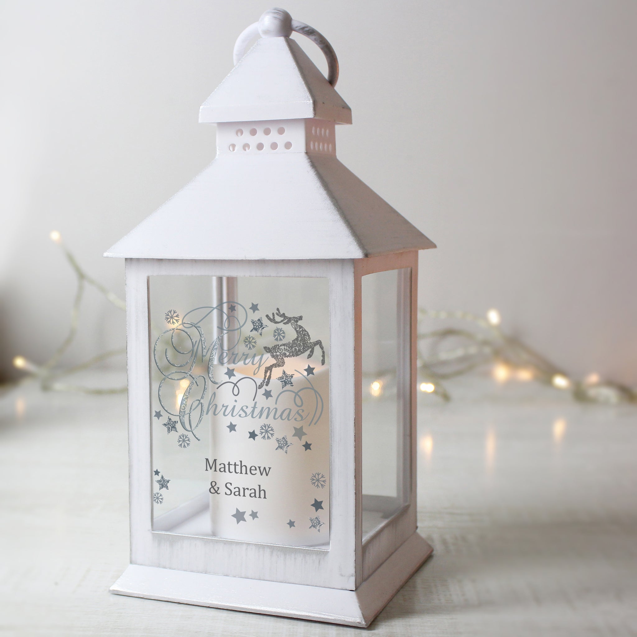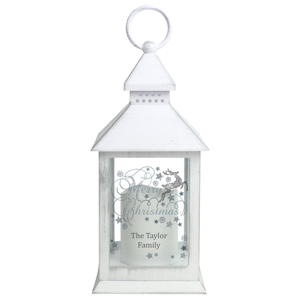 Personalised Gifts - Silver Reindeer White Rustic Lantern