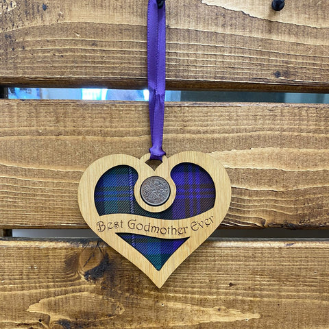 Lucky Sixpence with Tartan - Best Godmother Ever