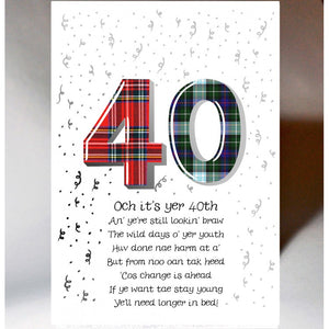 Scottish birthday card featuring tartan number '40' featuring Scottish Poem