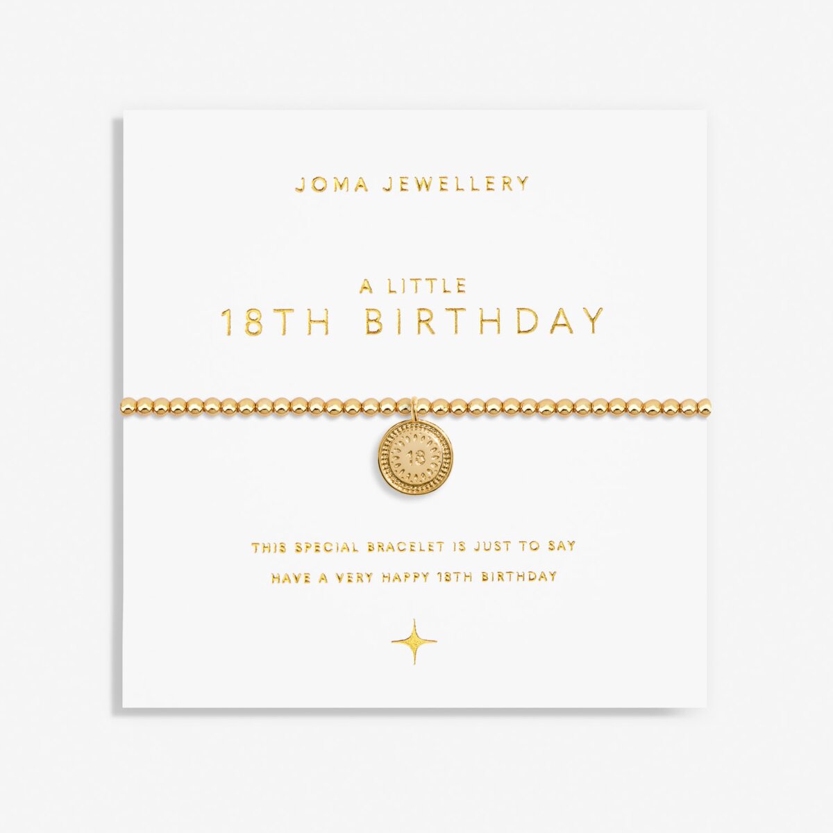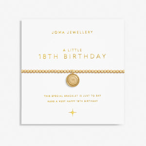 Joma Jewellery 'a little' bracelet with a gold plated stamped disc charm, presented on a sentiment card which reads: