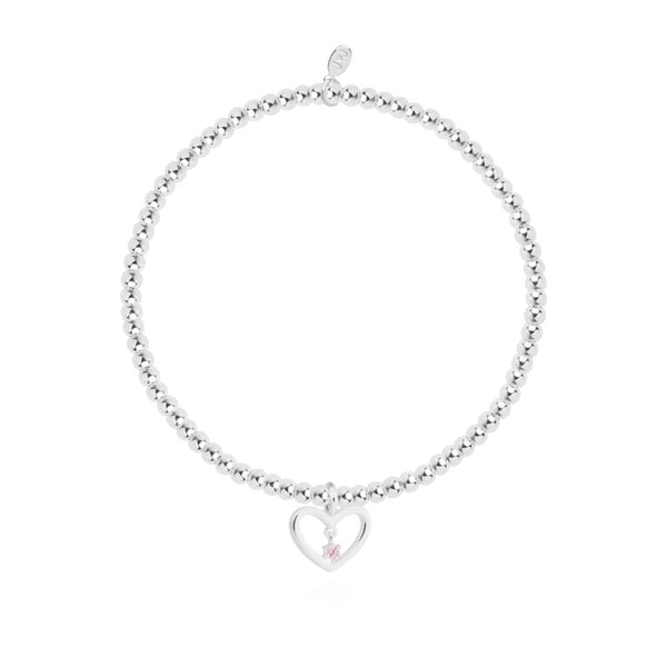 Silver plated, stretch bracelet with cute little heart charm, presented on a sentiment card which reads: