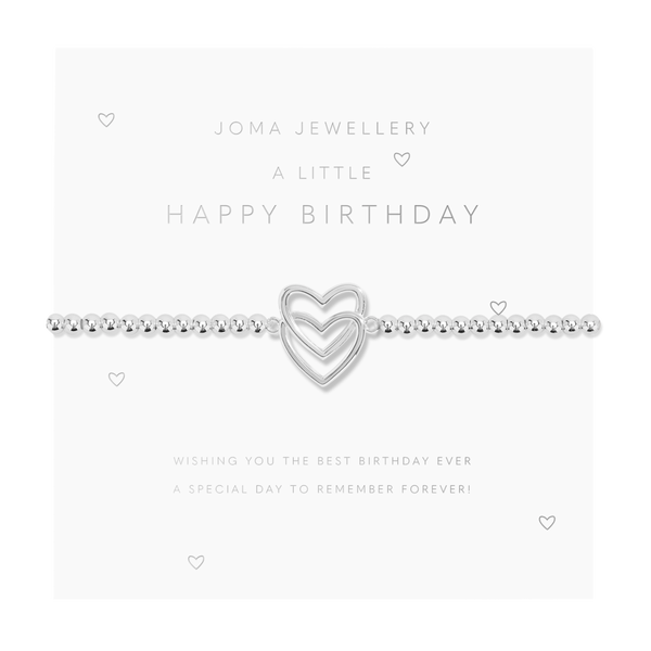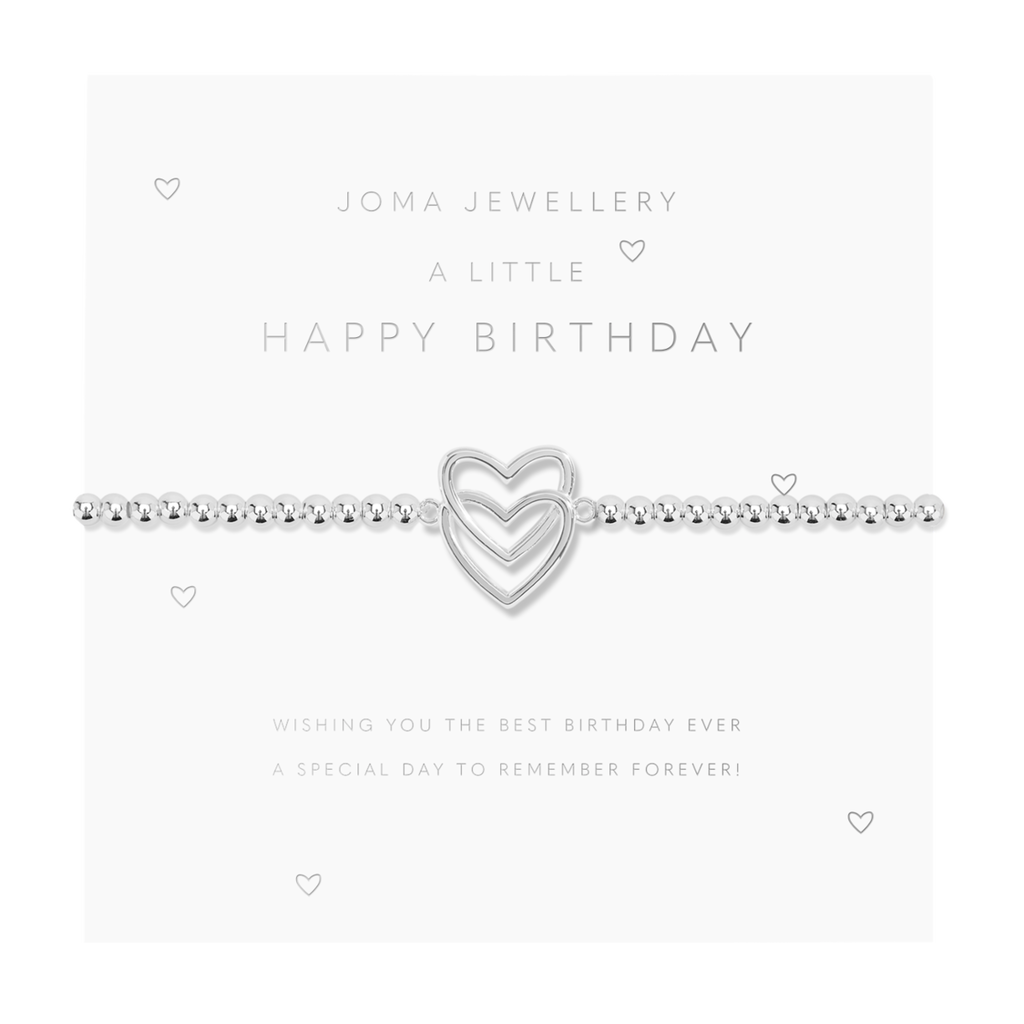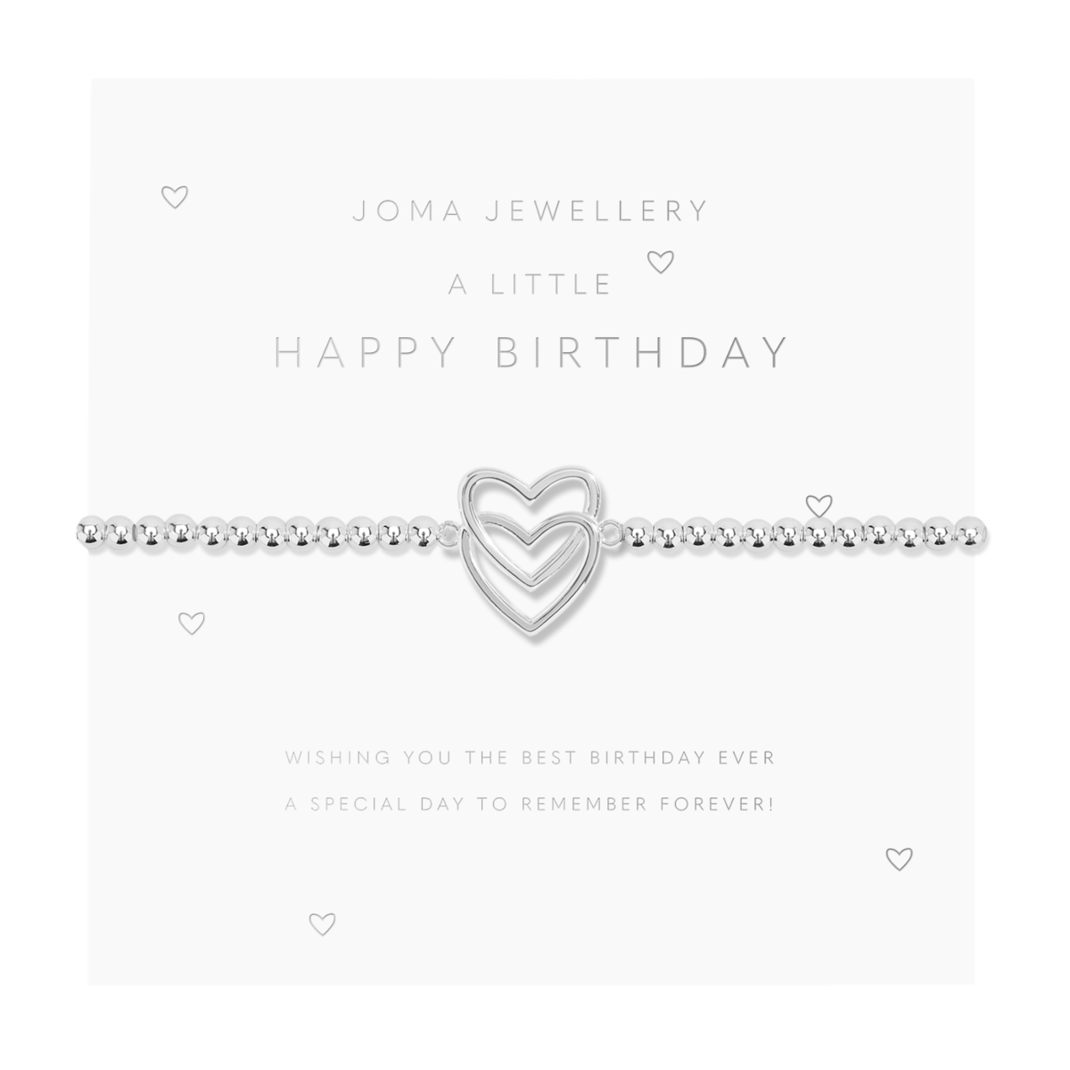 Joma Jewellery 'A Little' Happy Birthday Bracelet - Double Heart Charm
