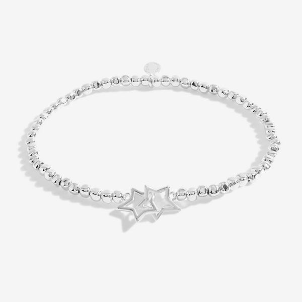 This silver plated stretch bracelet from Joma Jewellery's Forever Yours range features two silver plated interlocked stars and comes presented on a blush sentiment card which reads: