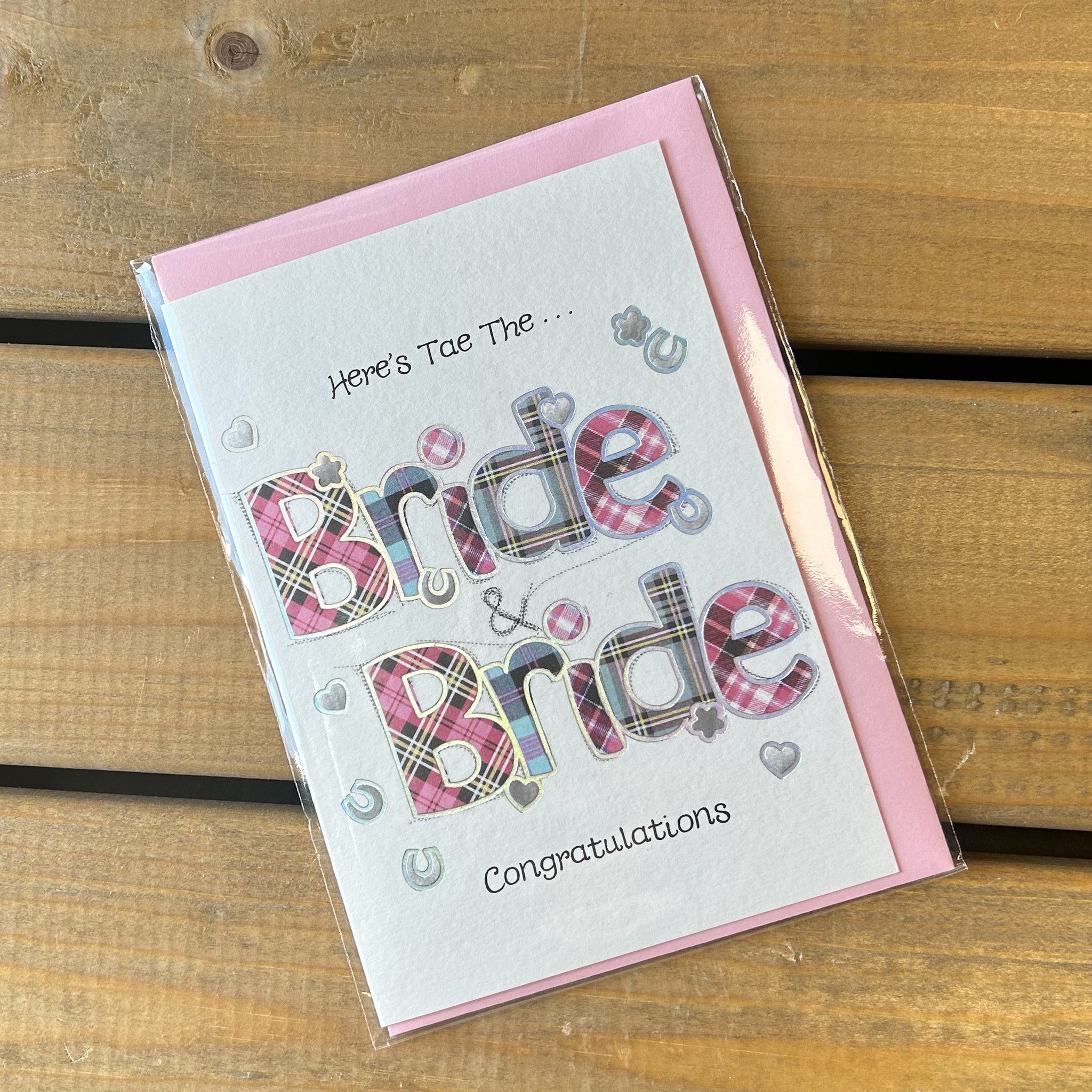 The Words 'Bride and Bride' are featured in a colourful tartan.